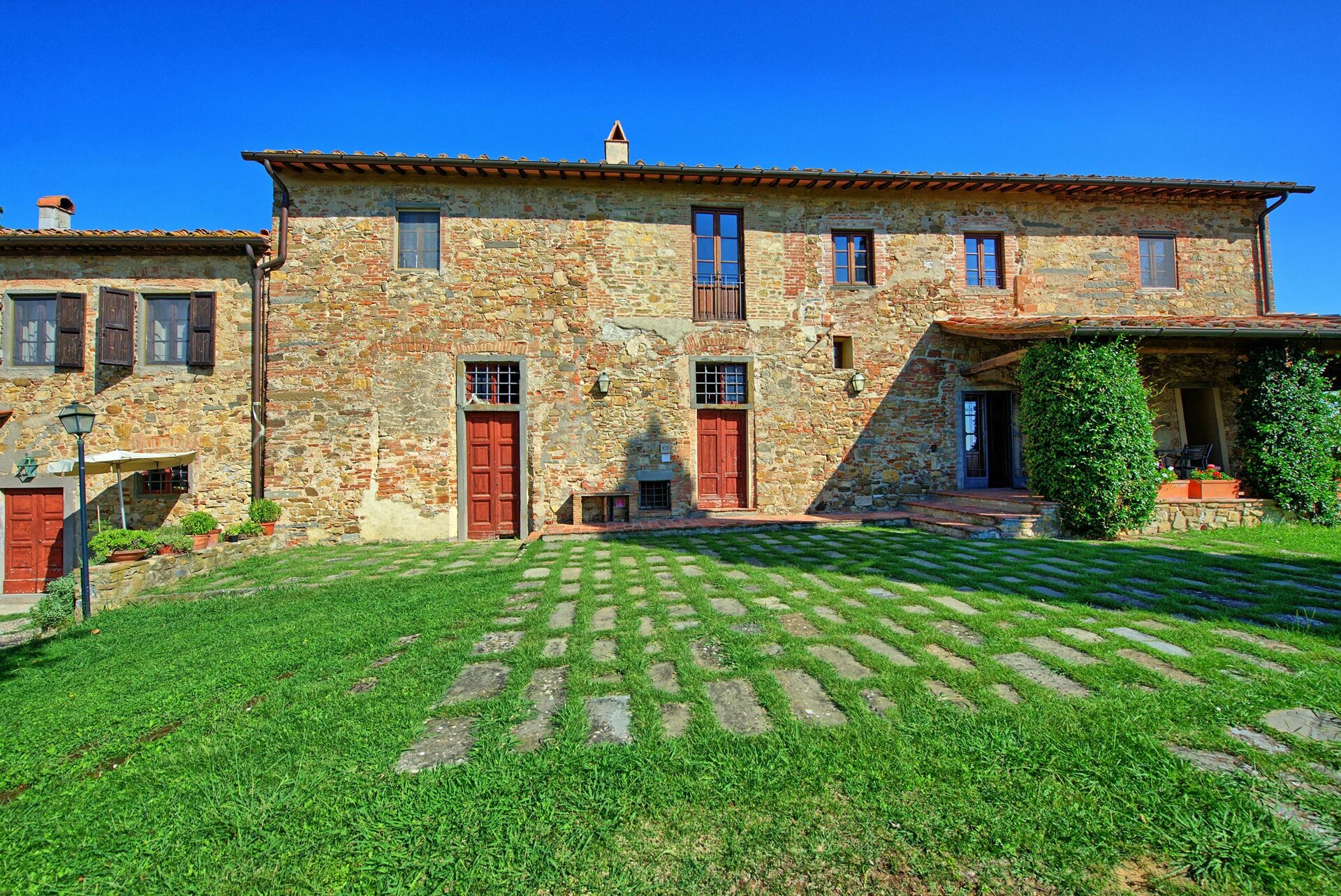Big independent farmhouse with private swimming-pool created by the restoration of an ancient oil mill situated approx. 18 km from Florence away. This property nestling deep among vineyards and olive groves is very large and offer nicely furnished rustic interiors. The villa is part of a farming estate producing wine and olive oil and offering an ideal terrain for beautiful walks in close contact with the Tuscan landscape.